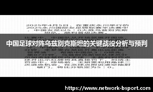 本文将对中国足球与乌兹别克斯坦之间的关键战役进行深入分析与预判,旨在揭示双方在历史交锋中的表现及其战术特点。首先,我们将回顾两队过往的交锋记录,分析其影响因素和结果。接着,将从球队现状、技战术特点、心理因素以及未来前景四个方面进行详细探讨,以期为读者提供全面的视角和深刻的见解。在总结部分,我们将对整个分析过程进行归纳,并展望两队在未来发展中的可能走向。这篇文章不仅是对一场比赛的解析,更是对中国足球未来发展的思考。